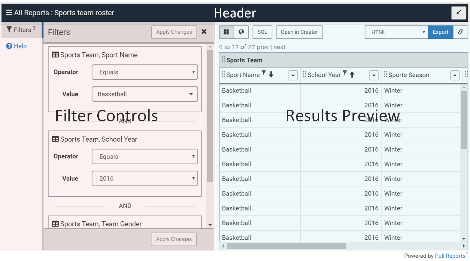 Learn about the various components of the Pull Reports™ Query Viewer client.